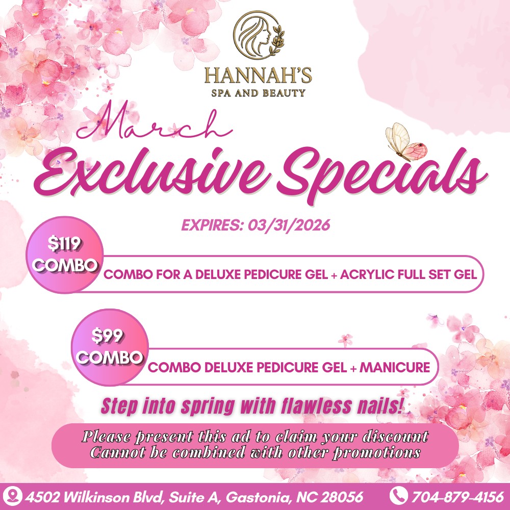 Whether you're looking for flawless nails, glowing skin, or long-lasting beauty enhancements, Hannah’s Spa and Beauty Salon promises a personalized experience that leaves you feeling confident and refreshed.